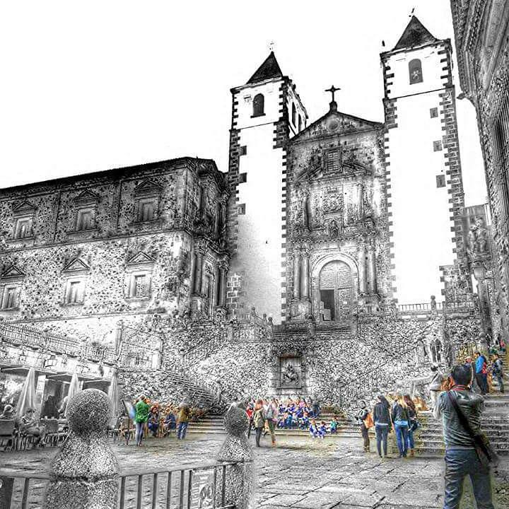 Seguimos recto como no , por la calle de la Estrella, que hasta la plaza de Santa Maria nos lleva, a la izquierda el palacio del Obispo y el de Mayorazgo a la derecha, de frente la Concatedral con San Pedro de Alcántara en la puerta siempre esta, si tiras pelin a la izquierda la calle Tiendas,y que a la plaza del Socorro y a la puerta de Coria lleva, con la torre Redonda y el palacio de Carvajal te encuntras.