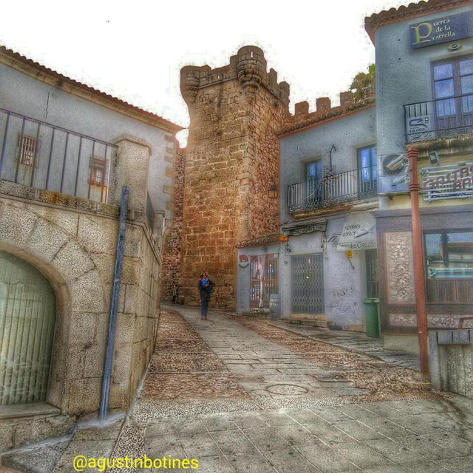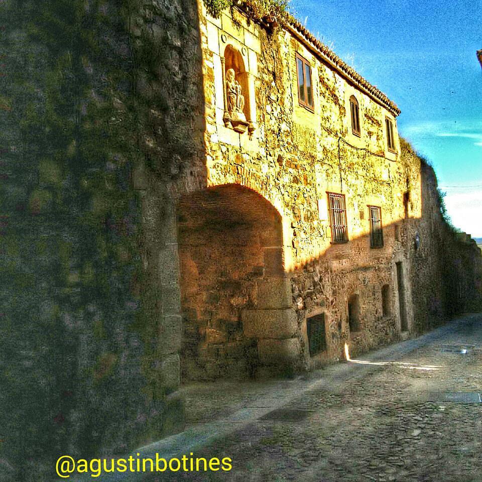 Si quieres hacia el callejón de D. Álvaro, pero yo prefiero por la calle y el palacio de Pereros o Pereiros que es esta familia de origen Gallego, por la puerta de Mérida pasar, dejemos a las monjitas de las Claras que rezando deben estar, vemos la calle Ancha y el palacio de los Marqueses de Torreorgaz, donde tiene su sede el Parador Nacional, y en la esquina de Caballeros Hospital, Callejeando pasamos al Adarve del Padre Rosalío y junto al Arco de Santa Ana encontraras , pero que me pasa, ahí que ver que se me paso incrustada en la muralla la torre Árabe del A-Ver, y frente al Arco de Santa Ana, la fachada de los condes de Adanero nos reclama, ya bajamos hacia el adarve de la Estrella, cuando la torre del Horno tan bien de Árabes construidas y frente al palacio de la Generala te admira, te asomas desde la plaza de las Piñuelas y ves el Foro de los Balbos y de frente la también la Árabe torre de la Yerba, sigues bajando el adarve y ya sin darte cuenta te encuentras de nuevo en la Plaza Mayor donde la torre de los Púlpitos te contempla...