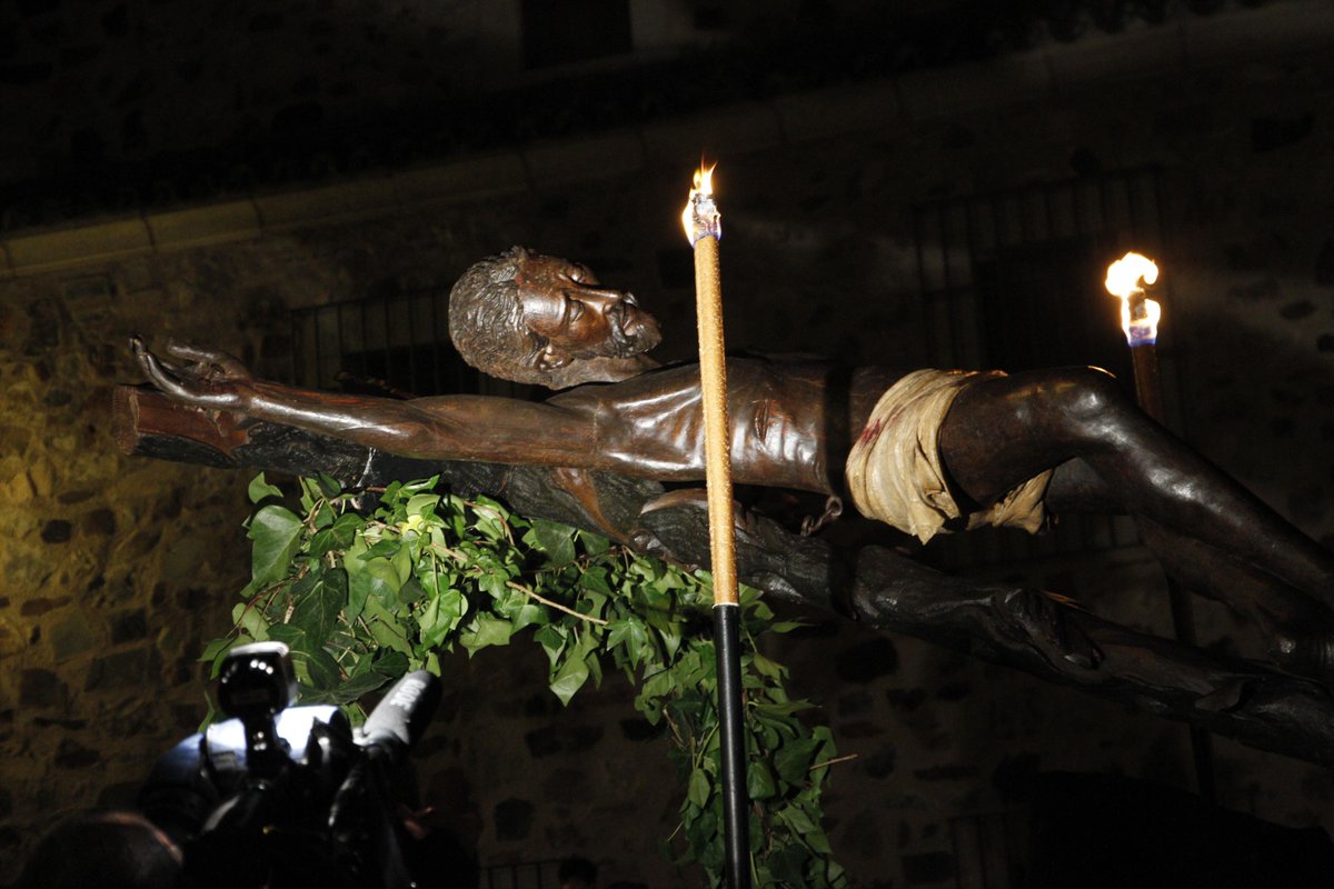 La muy Solemne Venerable y Pontificia Cofradía de la Hermandad Penitencial del santo Cristo de Santa María de Jesús , o popularmente llamado Cristo Negro, fué fundada en Portugal por los antiguos caballeros del templo y los de la orden de Alcántara sucesora de la de los Fatres de Cáceres, llamados ahora Pobres Caballeros de Cristo refugiados en Portugal, el día 3 de mayo de 1.490 y refundada en 1.986, procesióna los Miércoles santos a las 24,00 horas siendo de obligado el silencio, goza de muneros clasus, es decir que solo puede tener de entre 50 y 59 hermanos, en principio surgió como devoción particular de la nobleza, después pasaría a devoción popular, en su origen templario y los hermanos antes de posesionar y a puerta cerrada celebran los ritos de esta orden, la talla es anónima del siglo XIV.
