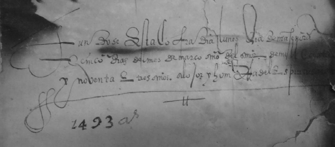 “Fundóse esta cofradía día lunes, día de Ntra Sra veinte y çínco días del mes de março año del Señor de mill e cuatrocientos y noventa y tres años a loor y honra del Espíritu Santo.